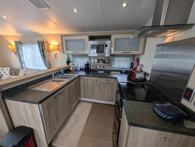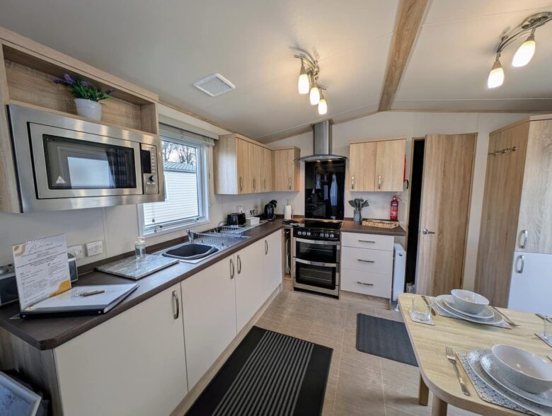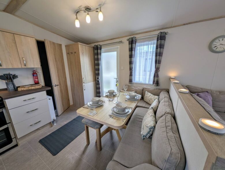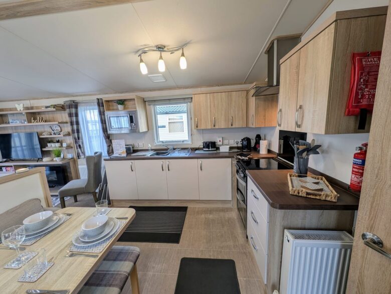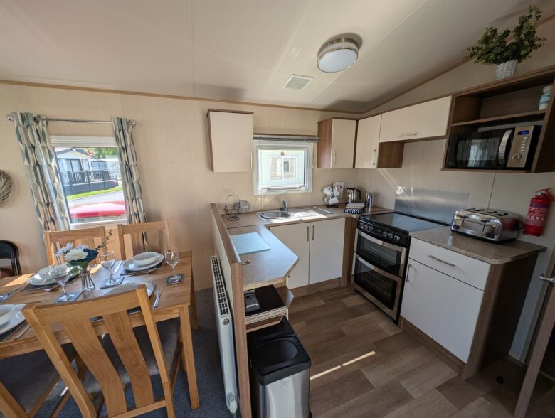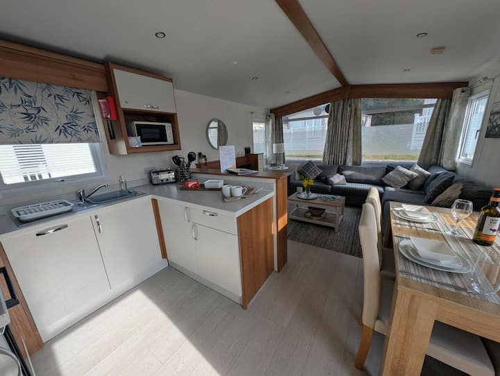 Our holiday home boasts a beautifully refurbished kitchen and living area, ensuring modern comfort for everyone. Enjoy quality time together in a bright, inviting space, then explore the fantastic park amenities (fees apply), knowing your furry friend is welcome too.