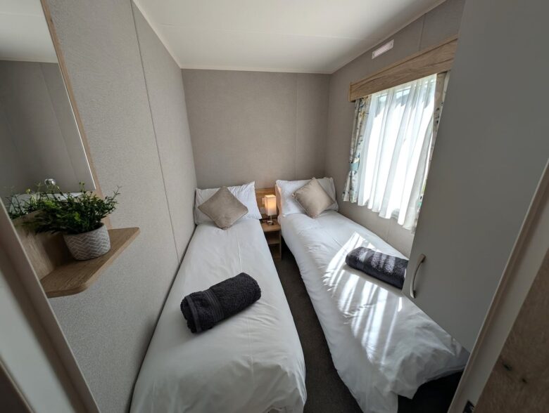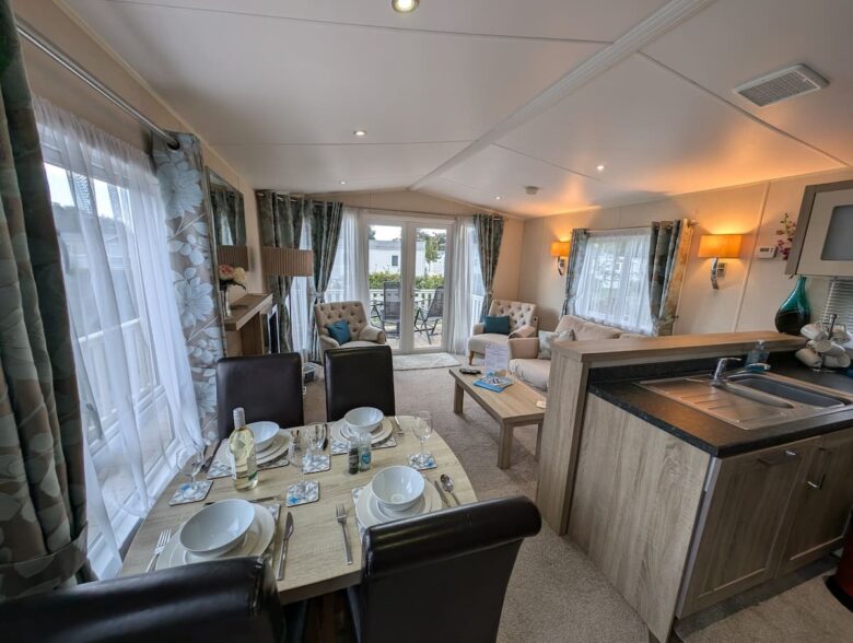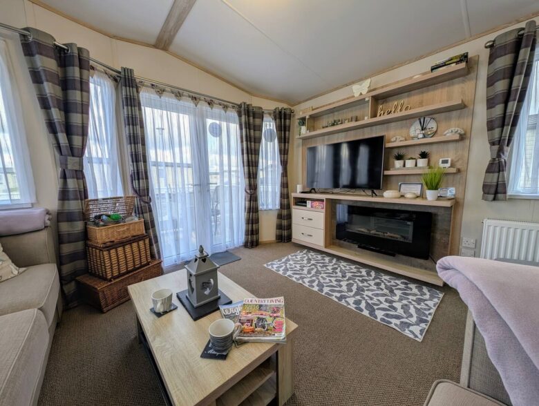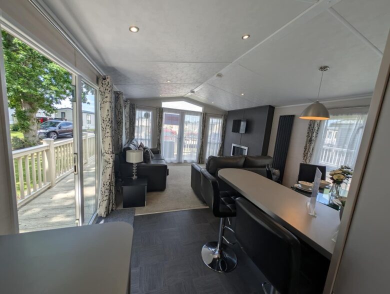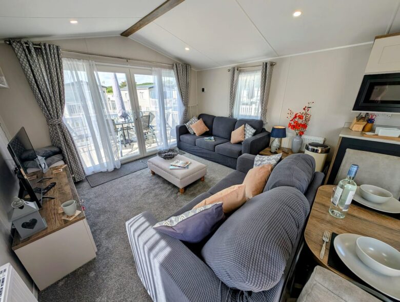 A bright 2-Bedroom, 1-Bathroom holiday home at Hoburne Holiday Park, offering open-plan living, private decking and a comfortable setting for relaxed family or couples’ getaways.